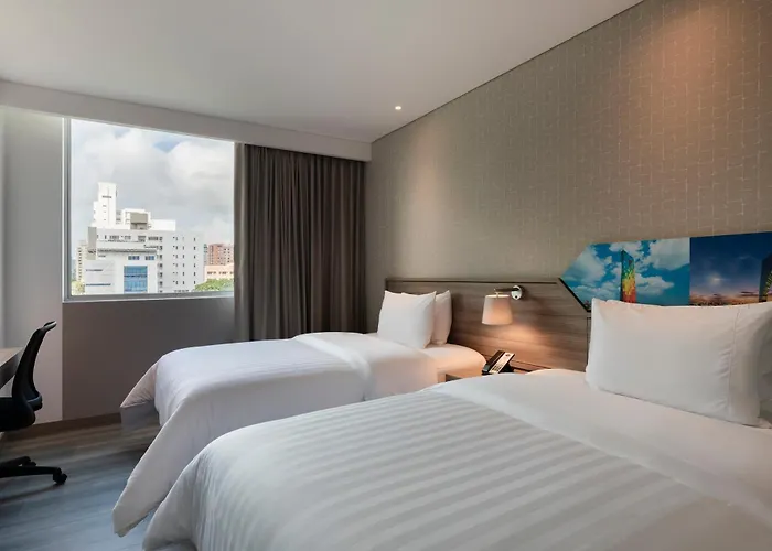 Esta propriedade tem 380 quartos incluindo o quarto duplo com cofre para notebooks, mini frigobar e máquinas de café/chá. Hyatt Regency Cartagena dispõe de um bar da piscina e do restaurante Amacagua Grill que serve cozinha internacional. Eles também estão decorados com mobiliário elegante.